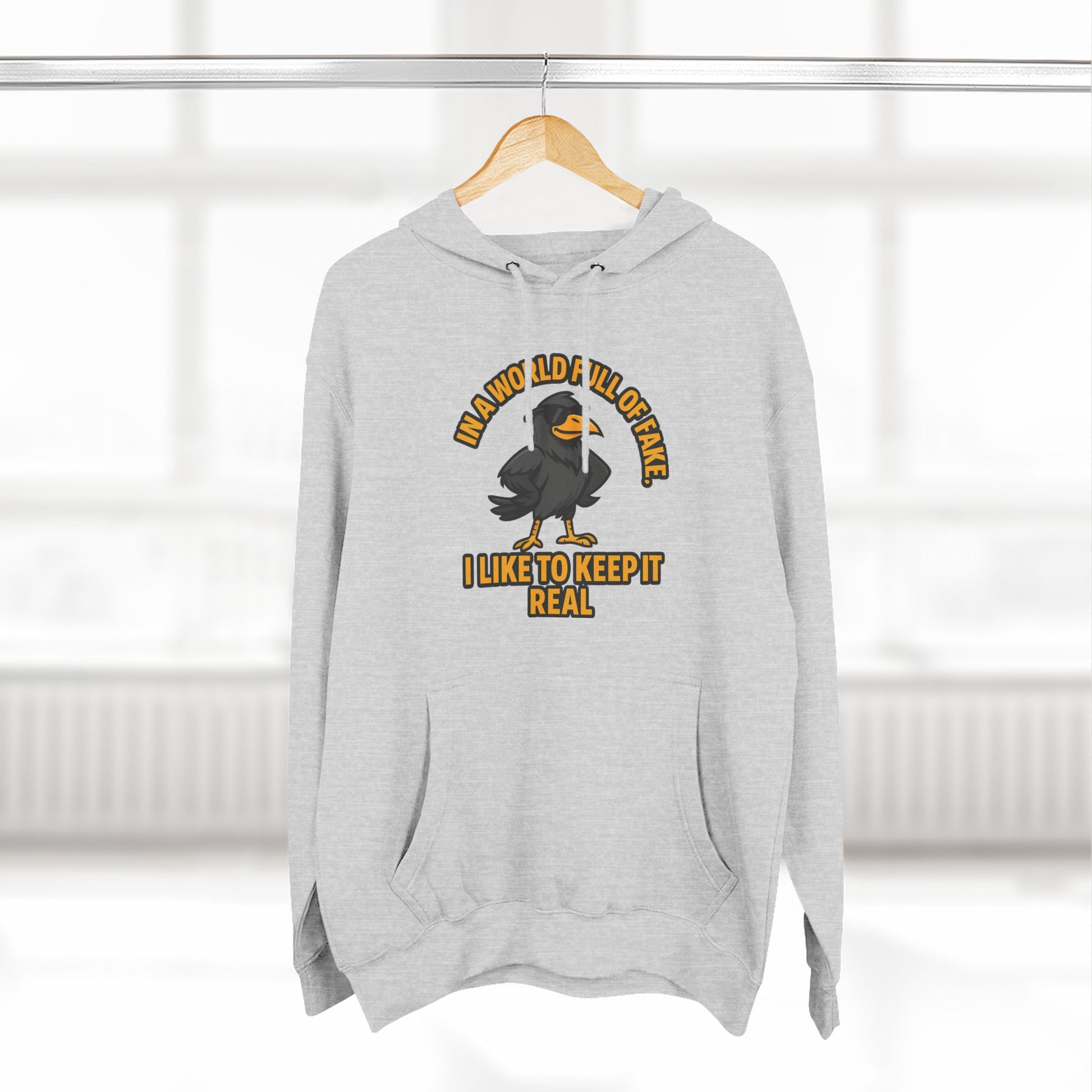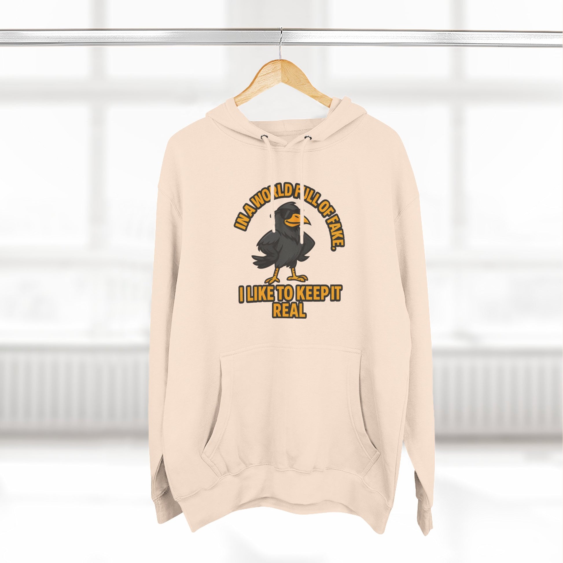 Three-Panel Hoodie — Funny Ostrich "I Like to Keep It Real" Graphic